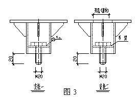 螺栓球網(wǎng)架支托一般為Q235鋼,而螺栓球?yàn)?5號鋼,由于二者材質(zhì)差異較大,施工現(xiàn)場支托安裝一般都采取螺栓連接的形式,支托螺栓一般使用M20普通螺栓即可。支托的加工及安裝方法又可分為兩中。支托一為支托螺栓與支托焊死,施工時通過旋轉(zhuǎn)支托將其擰入螺栓球內(nèi),支托板必須做成圓形;支托二為支托螺栓與支托不進(jìn)行焊接,并在支托板頂部開孔,施工利用套管扳手將支托螺栓擰入螺栓球內(nèi)。如圖3: