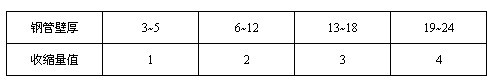 由于鋼管與錐頭(封板)在焊接過程中存在焊接收縮,在繪制桿件加工材料表時應(yīng)將桿件下料長度加焊接收縮量,焊接收縮量值可按照公式計算,也可根據(jù)車間實(shí)際測得的數(shù)據(jù)得出,實(shí)際操作中一般取后者。根據(jù)鋼管的壁厚其收縮量經(jīng)驗(yàn)值如下表(mm):