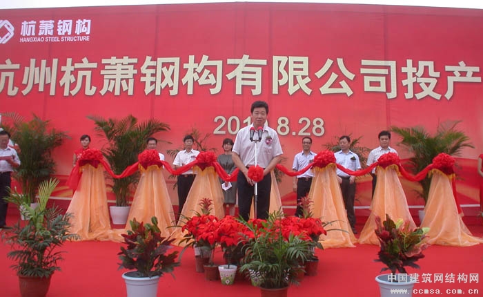 杭州杭蕭鋼構(gòu)總經(jīng)理?xiàng)顟c忠在致辭中說(shuō),自2008年12月30日杭蕭鋼構(gòu)集團(tuán)到桐廬投資設(shè)立杭州杭蕭鋼構(gòu)有限公司以來(lái),全體杭州杭蕭人團(tuán)結(jié)奮進(jìn)、合力進(jìn)取,力爭(zhēng)早日投產(chǎn)運(yùn)行。而項(xiàng)目立項(xiàng)、土地平整、土建施工、鋼結(jié)構(gòu)吊裝、設(shè)備安裝調(diào)試過(guò)程中,在各級(jí)領(lǐng)導(dǎo)的關(guān)心和支持下,在施工人員的辛勤付出下,杭州杭蕭鋼構(gòu)新廠區(qū)今天正式投產(chǎn)了!