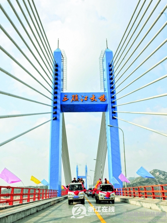 浙江最東部的跨海大橋——三礁江大橋昨日正式通車。該橋位于嵊泗列島最東面,連接嵊山、枸杞兩島。三礁江大橋是我省重點(diǎn)工程之一,建設(shè)工期歷時(shí)三年零九個(gè)月。