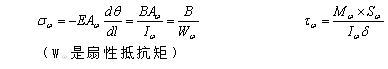 在計算出上述的幾何參數(shù)后,可以根據(jù)結(jié)構(gòu)設(shè)計手冊,查一端嵌固的轉(zhuǎn)臂梁在偏離彎心平面的彎矩作用下的內(nèi)力公式計算結(jié)構(gòu)中的彎扭雙力矩和扭矩。