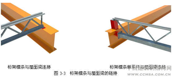 在重型鋼結(jié)構(gòu)廠房中,歐本桁架檁條的連接也非常簡(jiǎn)單。桁架檁條的安裝和Z形檁條不同,桁架檁條是采用簡(jiǎn)支鉸接連接,每端用二個(gè)普通螺栓連接,不存在Z形檁條有時(shí)要連續(xù)搭接的問題。但是桁架式檁條的支撐系統(tǒng)比冷彎薄壁型鋼檁條系統(tǒng)要復(fù)雜些。