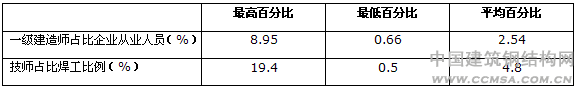 調(diào)查發(fā)現(xiàn)一級建造師數(shù)量相對較少,68%的行業(yè)企業(yè)一級建造師的數(shù)量少于6人;熟練技師占比焊工比例較少,平均不到5%。