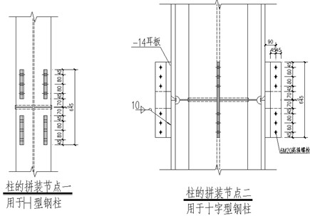 (a)、柱的拼裝節(jié)點,如圖六加耳板的方法,這樣可以在高空拼裝柱的時候,不僅能提高柱在拼裝時的精度,也有利于施工安全。