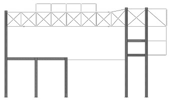 圖1c:展覽館典型立面圖(南北向二:桁架與框架柱)