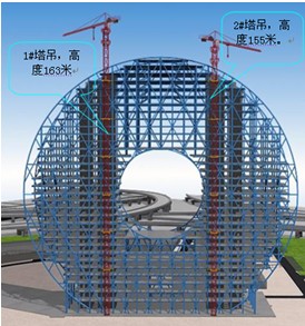 由于安裝高度超高,無法搭設(shè)外部豎向支撐進(jìn)行安裝。如根據(jù)結(jié)構(gòu)特點(diǎn)逆做法施工,這樣將導(dǎo)致鋼結(jié)構(gòu)吊裝困難,安裝功效低,施工作業(yè)危險(xiǎn)系數(shù)大等一系列問題。