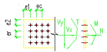螺栓受剪力最大處:受到N產(chǎn)生的剪力 Nx1 = 0 KN;受到V產(chǎn)生的剪力 Ny1= -3.4375 KN;受到M產(chǎn)生的剪力 Nx2 =