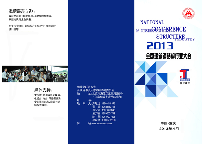 2013年中國(guó)建筑鋼結(jié)構(gòu)年會(huì)定于2013年4月18日-20日在重慶維景大酒店召開。為了充分發(fā)揮一年一度行業(yè)年會(huì)的作用,為鋼結(jié)構(gòu)行業(yè)搭建產(chǎn)品與用戶高效的對(duì)接平臺(tái),并使產(chǎn)品企業(yè)更好地服務(wù)于施工單位。經(jīng)研究決定,在2013年年會(huì)期間鋼結(jié)構(gòu)委員會(huì)組織行業(yè)配套產(chǎn)品龍頭企業(yè)產(chǎn)品展示活動(dòng)(展示時(shí)間為兩天)。內(nèi)容如下: