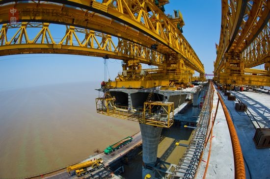 嘉紹跨海大橋于2008年底動工,是繼杭州灣跨海大橋之后杭州灣上第二座跨海大橋,總投資約139億元。其中跨越杭州灣的大橋長約10公里,按高速公路標準建設,設計時速是100公里。嘉紹跨海大橋建成后,浙江紹興到上海的車程將縮短近一半。目前,全橋下部結構已全面完工,預計全橋年底貫通。(互聯網)